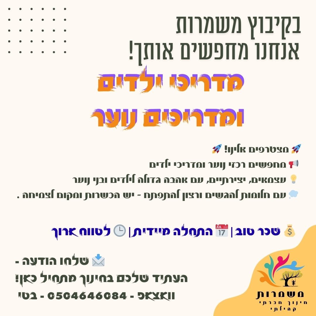 - מדריכי ילדים ומדריכי נוער – לפרטים לחצו כאן >
